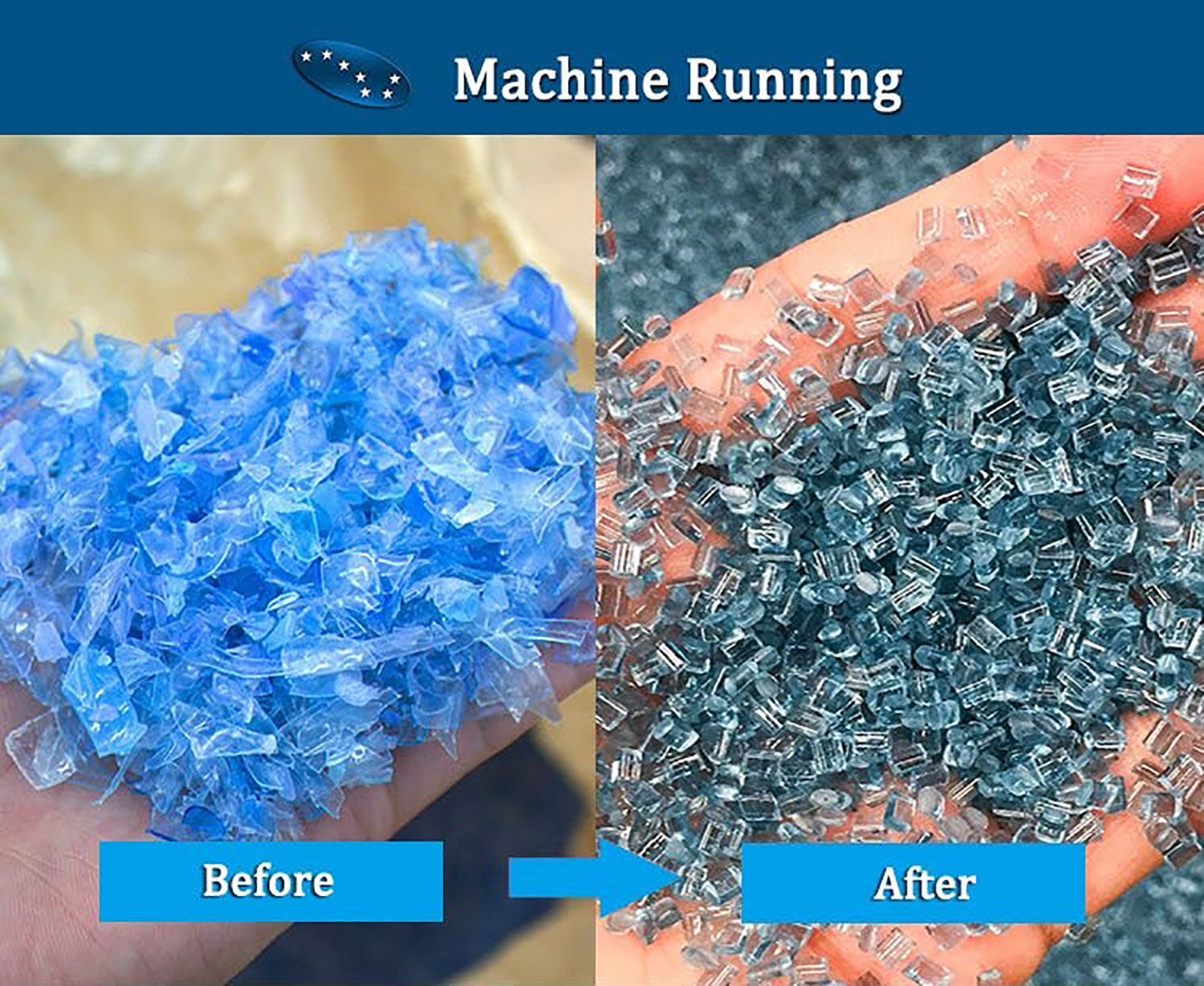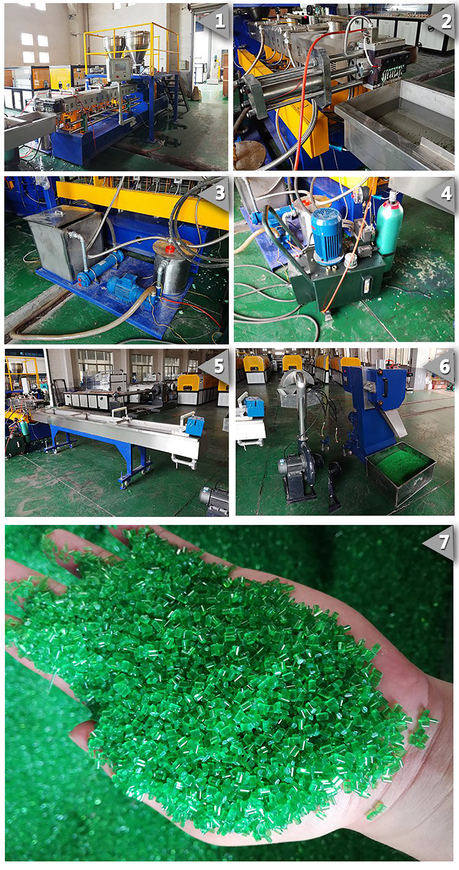 PET flakes Pelletizing System is a reliable recycling production line consists of stable drying system,strong vacuum degassing system,efficient filtration system,strand cutting system and viscous equipment.All these advanced technologies ensure high quality final PET pellets,which can be used for a wide range of applications(fibers,bottles containers,packing sheets,strap,non-woven fabrics)with a capacity range of 100-1000kg/h